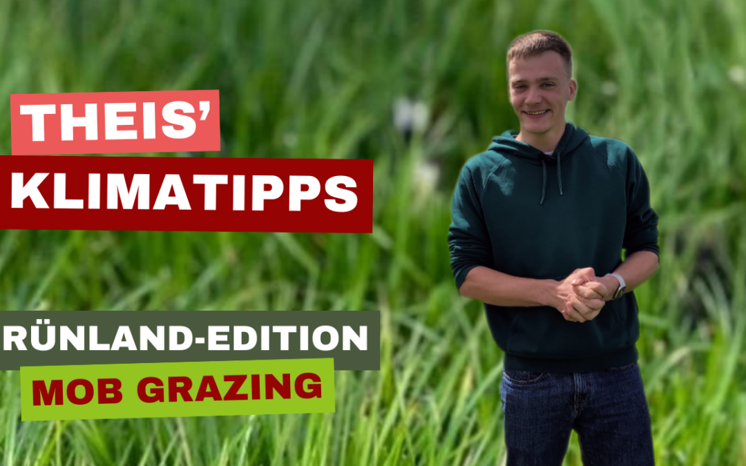 In unserer Videoreihe mit dem Praktikanten Theis beleuchten wir Maßnahmen, die als Beitrag zum Klimaschutz dienen können. Die vierte Folge der Serie „Theis‘ Klimatipps – Grünland Edition“ beschäftigt sich mit dem sogenannten Mob Grazing.