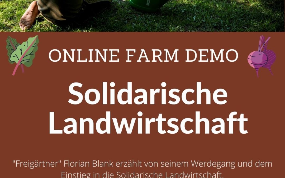 Online Farm Demo „Solidarische Landwirtschaft“ von Sandra Honegger | Feb. 22, 2021 | Allgemein | 0 Kommentare Kommentar absenden Antwort abbrechenDeine E-Mail-Adresse wird nicht veröffentlicht. Erforderliche Felder sind mit * markiertKommentar * Name E-Mail Website Meinen Namen, meine E-Mail-Adresse und meine Website in diesem Browser für die nächste Kommentierung speichern.